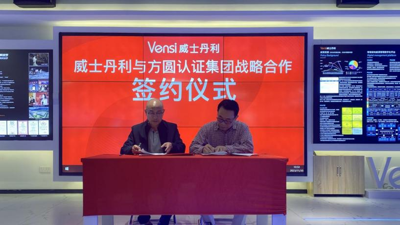 11月30日,方圓標(biāo)志認(rèn)證集團(tuán)廣東有限公司(以下簡稱“方圓廣東公司”)與廣州市威斯丹利智能科技有限公司綠色低碳戰(zhàn)略合作簽約儀式在廣州舉行。方圓廣東公司常務(wù)副總經(jīng)理熊飛彪,廣州市威斯丹利智能科技有限公司董事長陳志雄代表雙方簽署戰(zhàn)略合作協(xié)議。