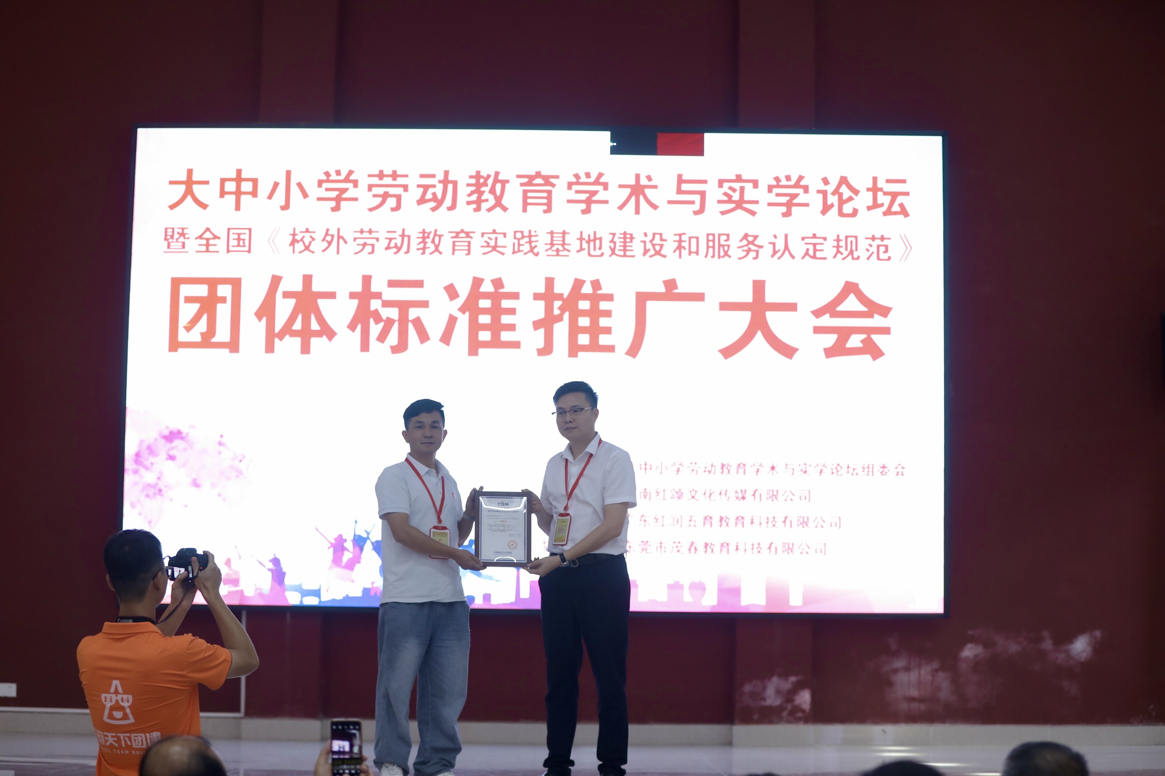 張耿彬總經理向廣東紅潤五育教育科技有限公司頒發了首張校外勞動教育實踐基地評價AAA證書。